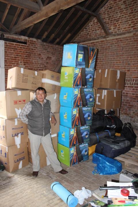 | The tents and sleeping bags donated by Rugby School, all boxed up, ready to be sent to Nepal |